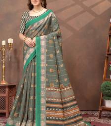 Grey printed art silk designer pallu saree