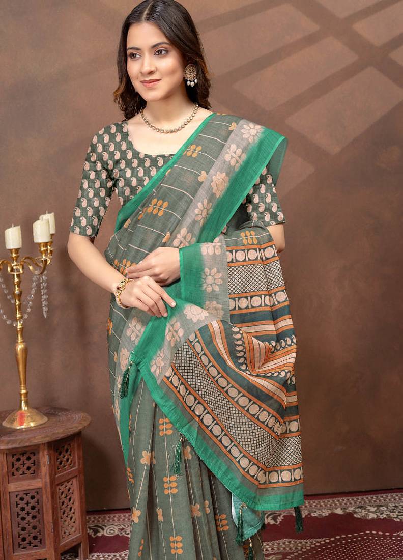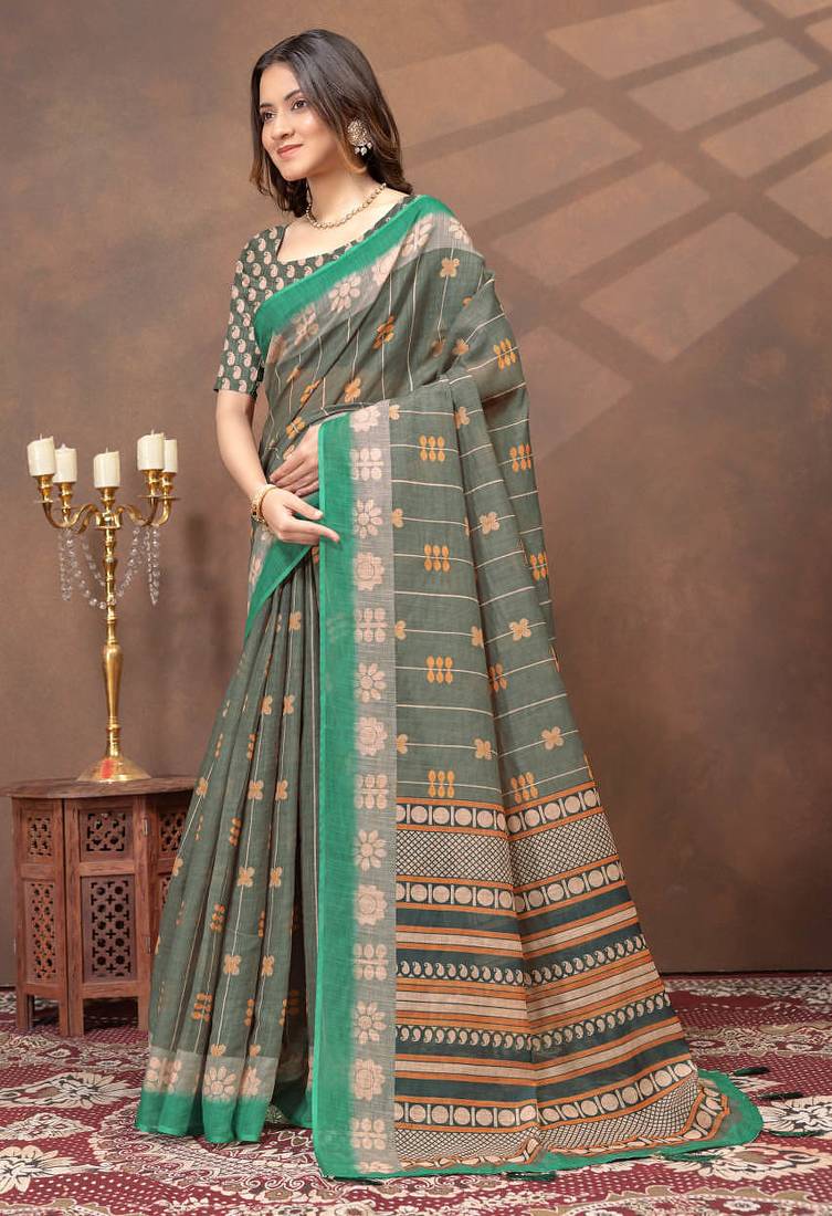 | Product Name | Grey Printed Art Silk Designer Pallu Saree | |