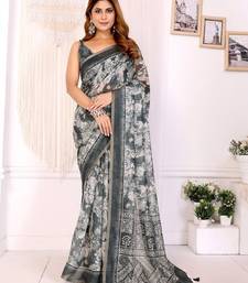 Grey printed art silk designer pallu saree