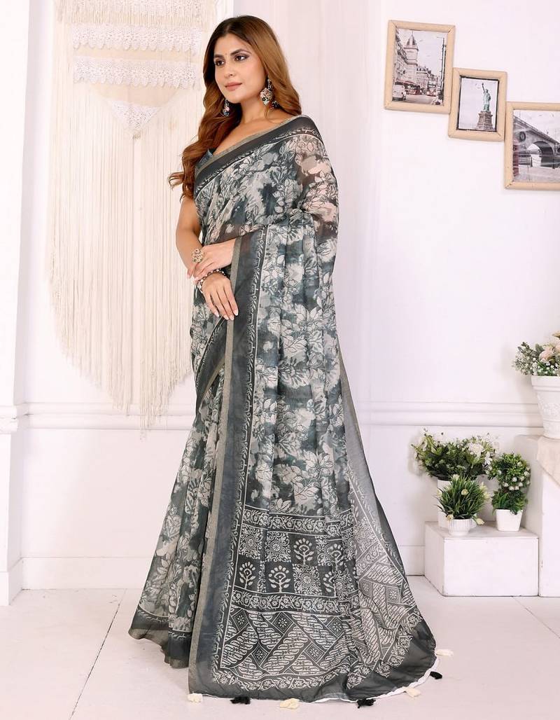 | Product Name | Grey Printed Art Silk Designer Pallu Saree | |