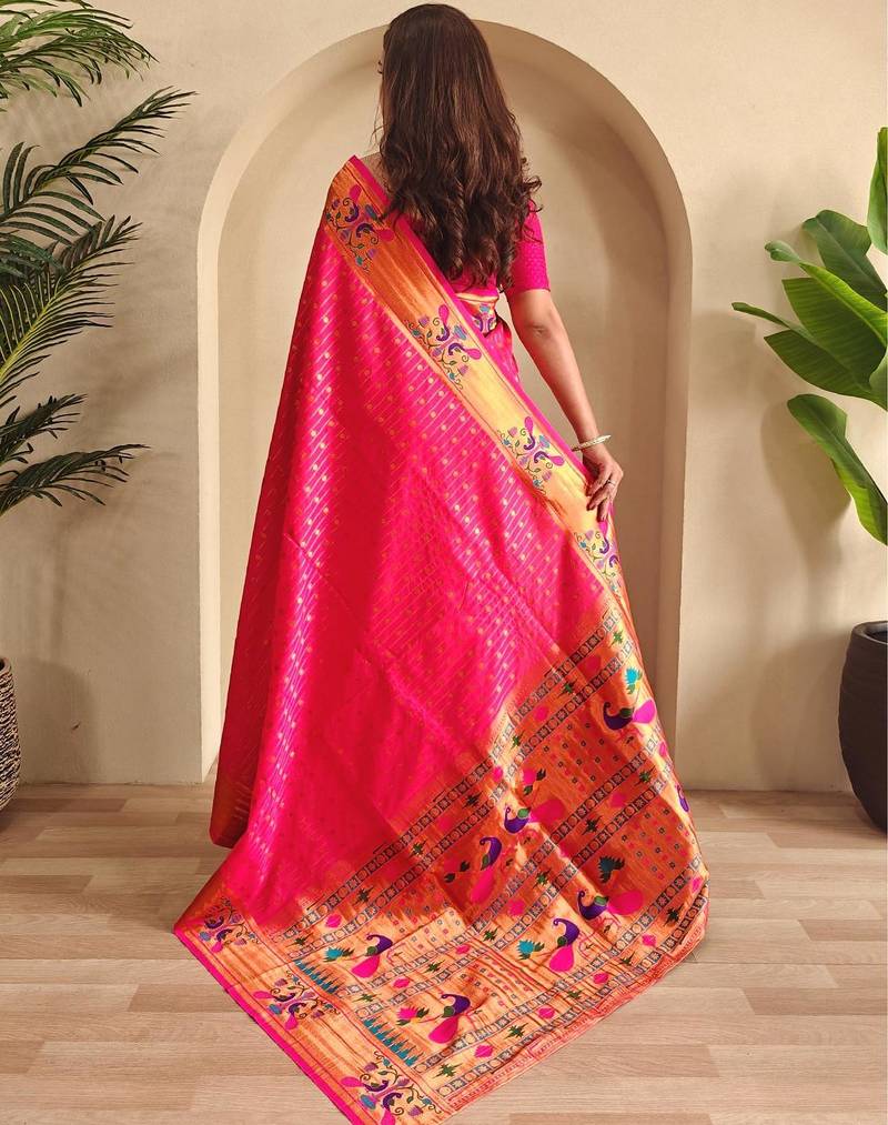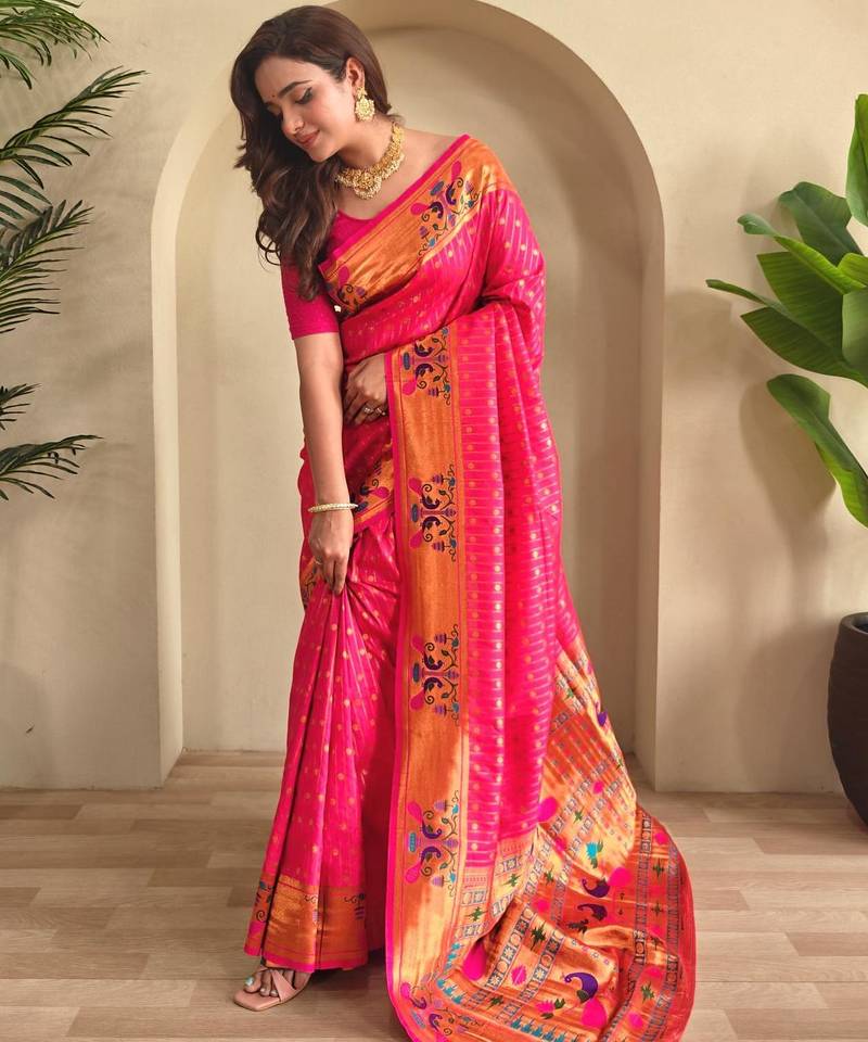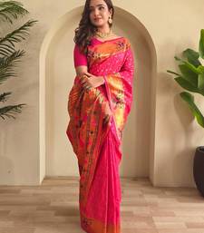 Hot pink art silk woven saree