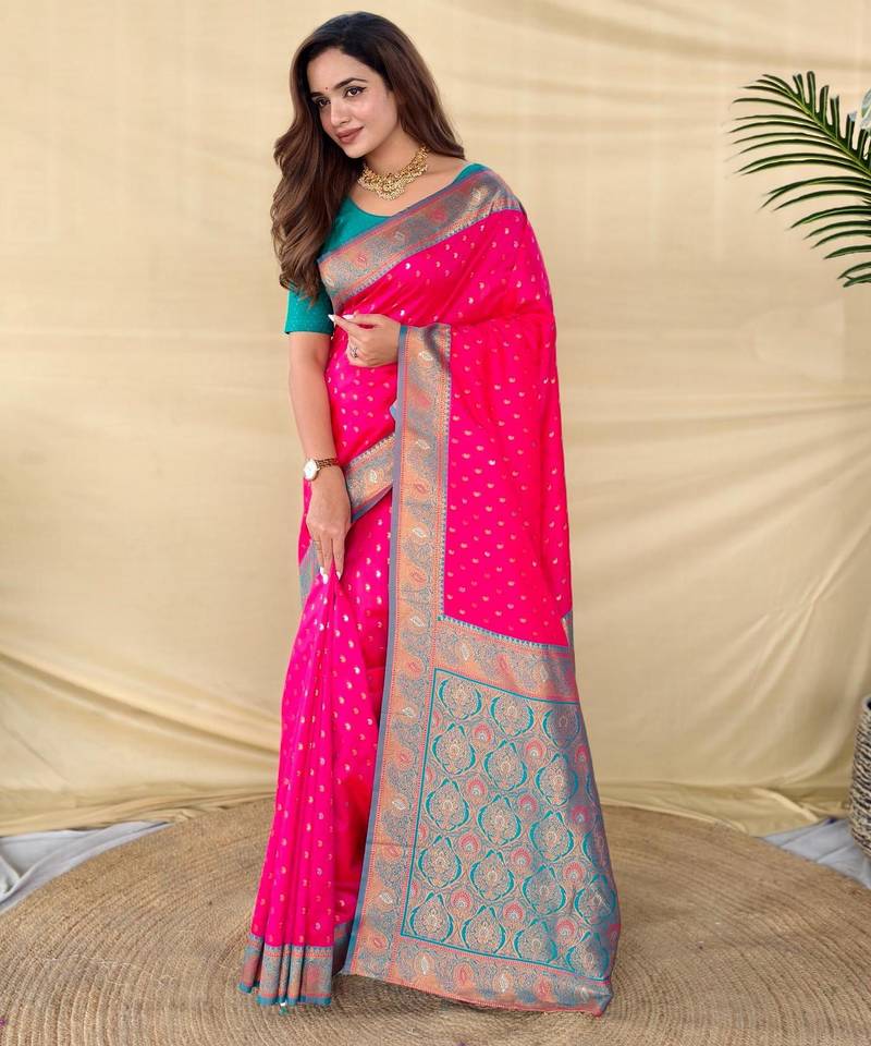 | Product Name | Hot Pink Art Silk Woven Saree | |