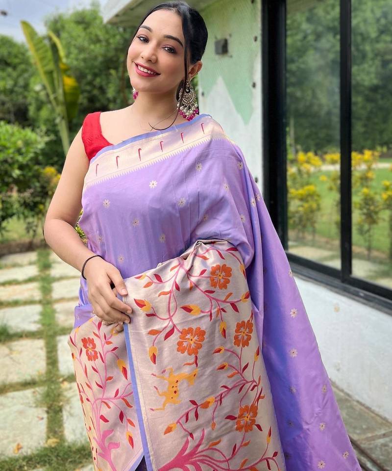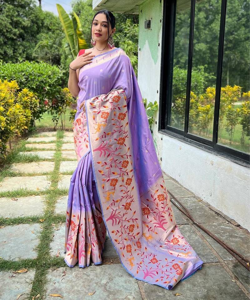 | • | Saree | : | Color- Lavender / Fabric- Art Silk |
