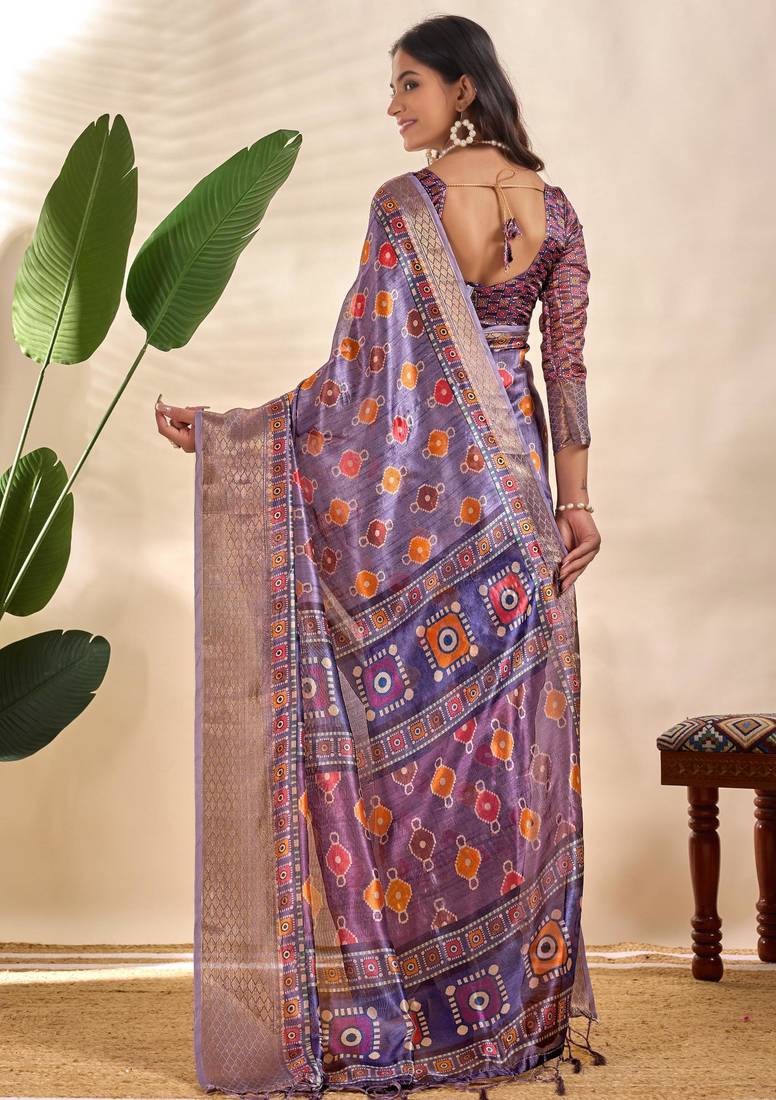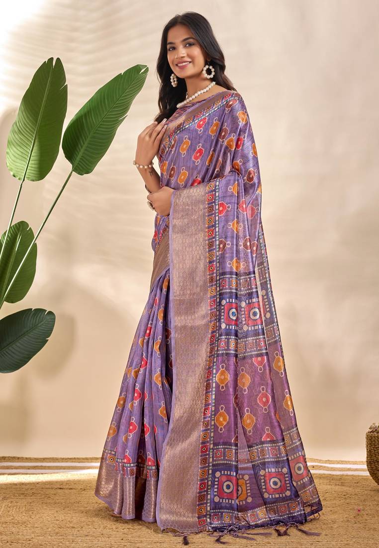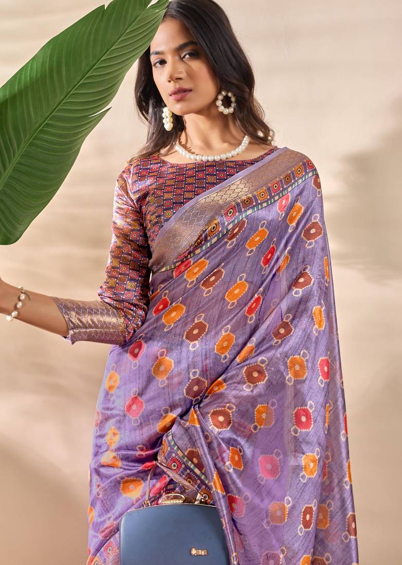 Lavender printed art silk designer pallu saree