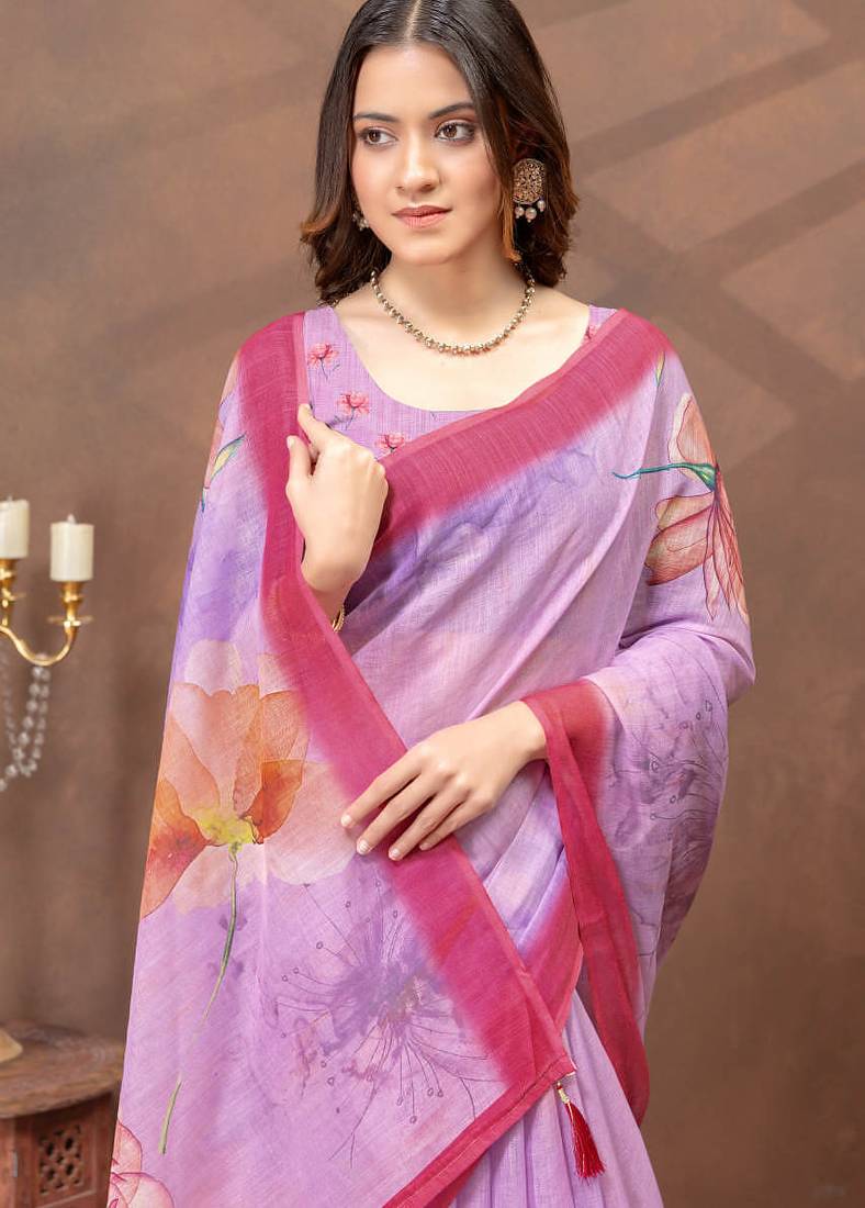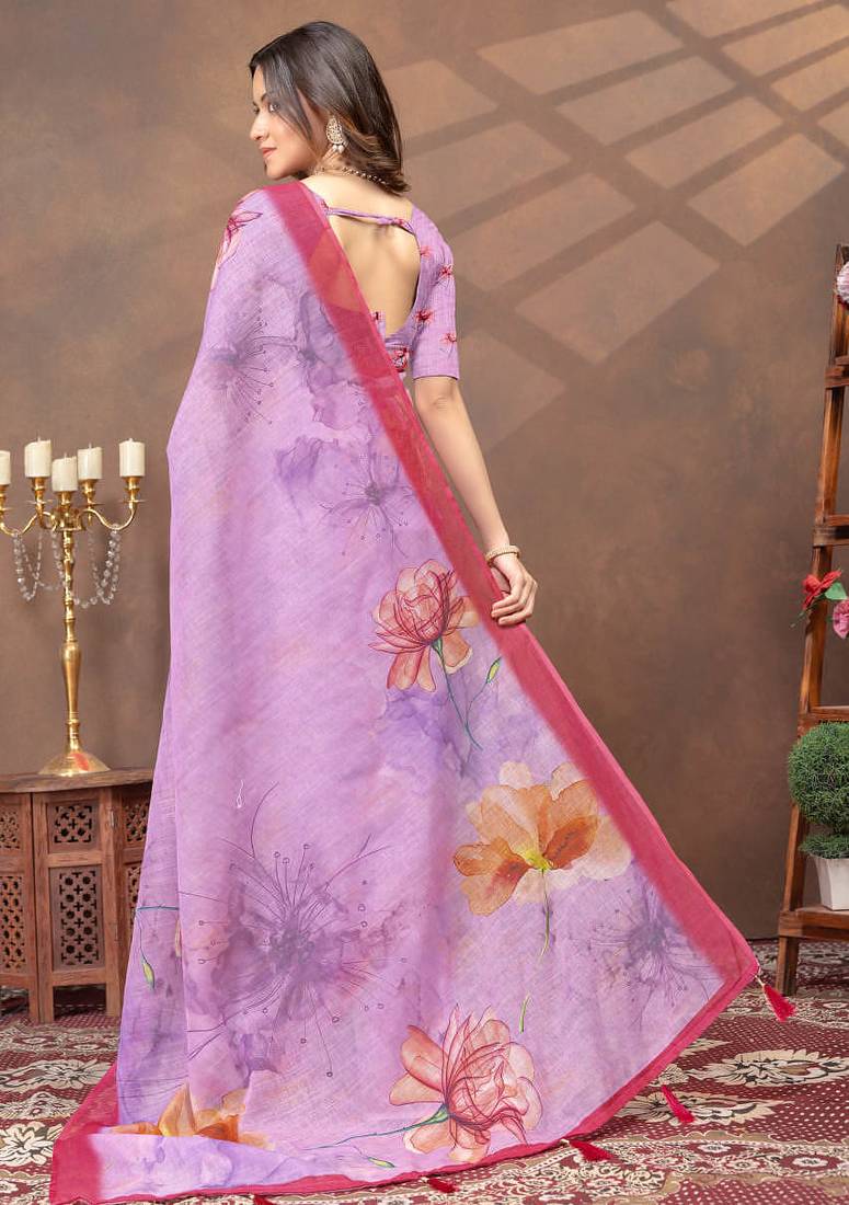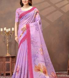 Lavender printed art silk designer pallu saree