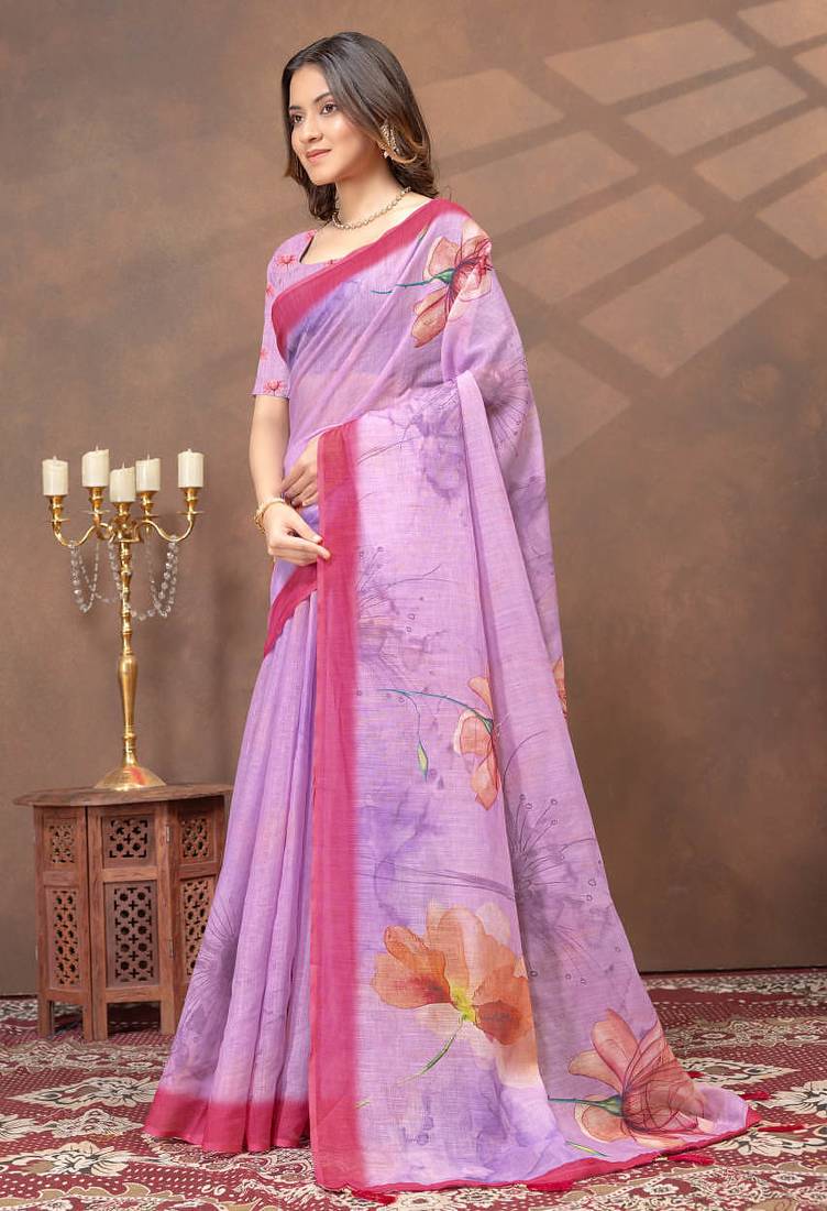 | Product Name | Lavender Printed Art Silk Designer Pallu Saree | |