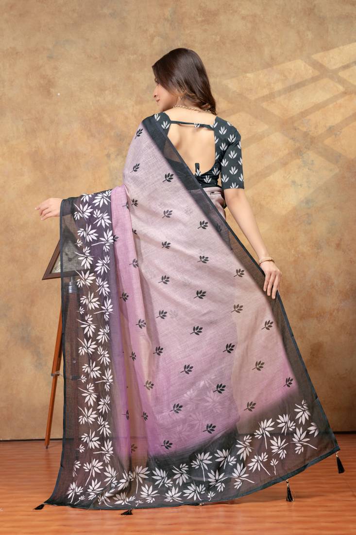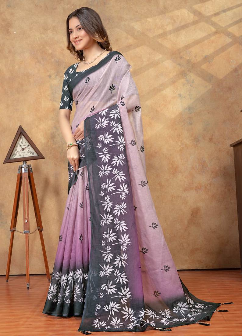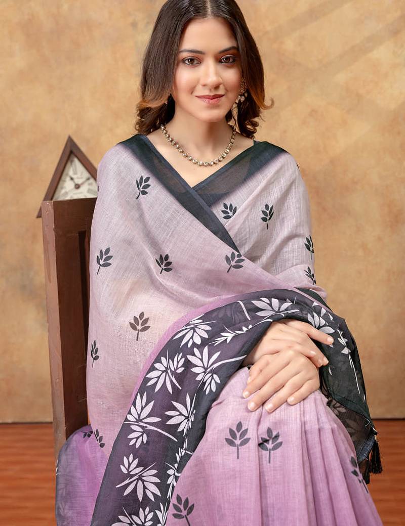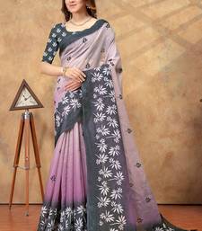 Lavender printed art silk designer pallu saree