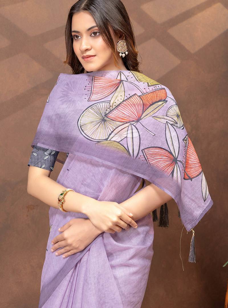 | Product Name | Lavender Printed Art Silk Designer Pallu Saree | |