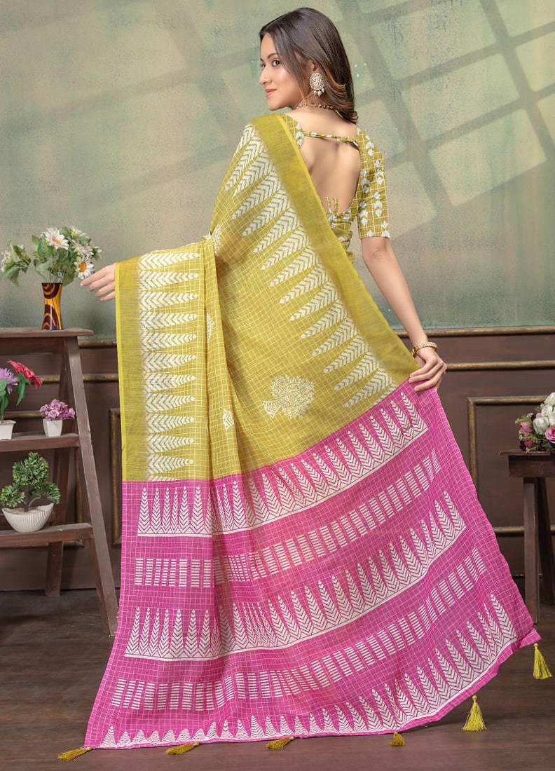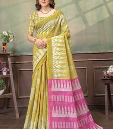 Lemon printed art silk designer pallu saree