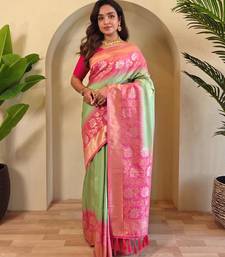 | • | Saree | : | Color- Light Green / Fabric- Art Silk |
