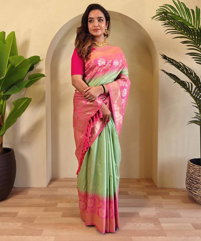 | Product Description | “This Elegant Woven Art Silk Saree Is Designed To Add Grace To Your Ethnic Look. Made With Premium Quality Fabric For Comfort And Style, It Is Suitable For Festive Wear, Parties, Weddings, And Traditional Occasions. Available In Multiple Beautiful Colors To Match Your Preference.” |