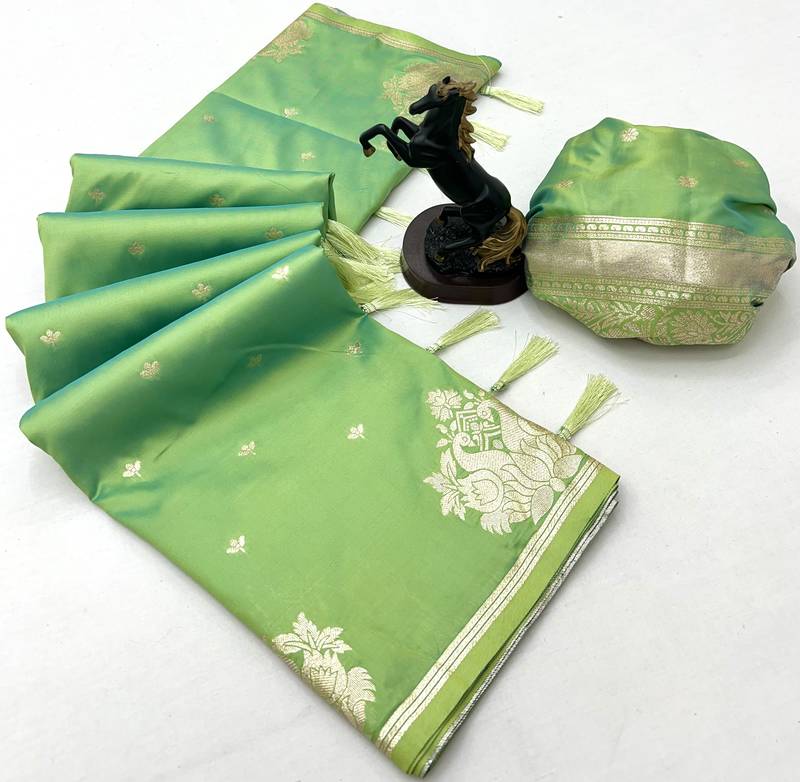 | Product Name | Light Green Banarasi Silk Saree With Swan Zari Motifs & Designer Pallu | |
