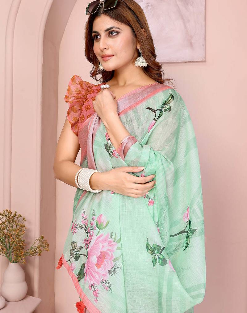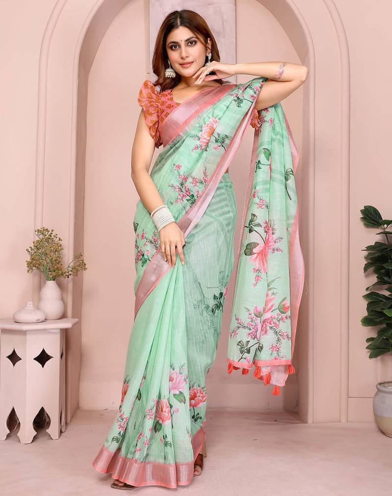 | Product Name | Light Green Printed Art Silk Designer Pallu Saree | |