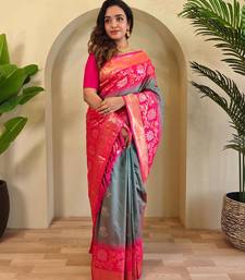Light grey art silk woven saree