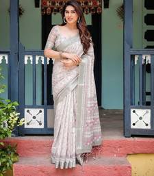 Light grey printed art silk designer pallu saree