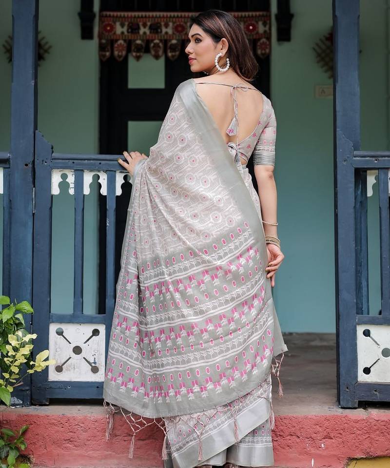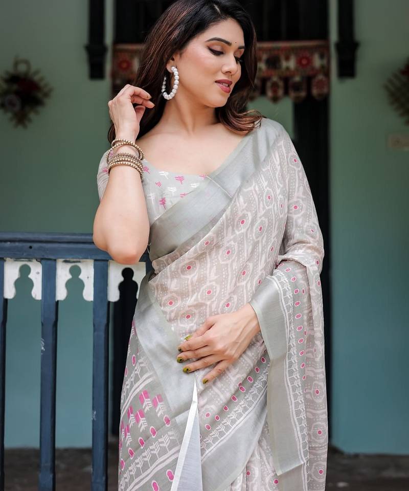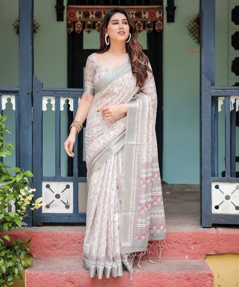 | Product Name | Light Grey Printed Art Silk Designer Pallu Saree | |