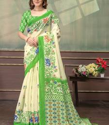 Light yellow printed art silk designer pallu saree