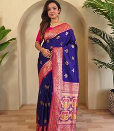 Magenta art silk woven saree