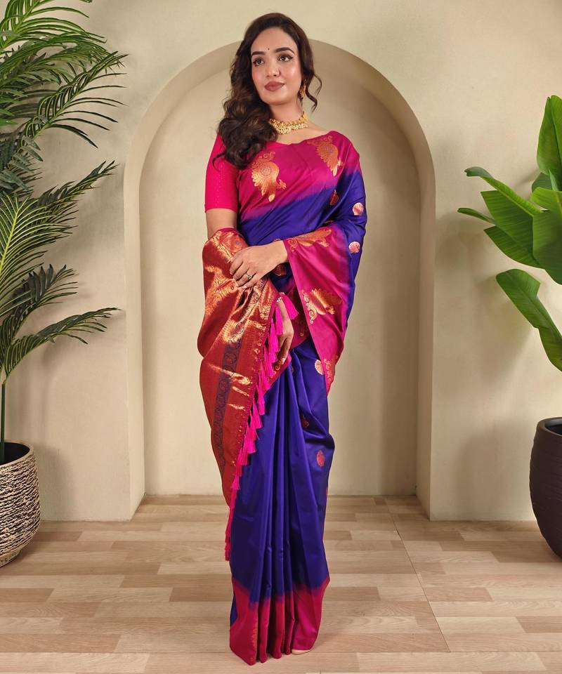 Magenta art silk woven saree