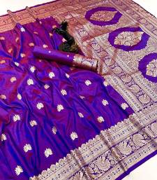 Magenta banarasi silk saree with zari embossed jal design & rich pallu