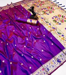 Magenta soft silk paithani saree with floral zari border & lotus pallu