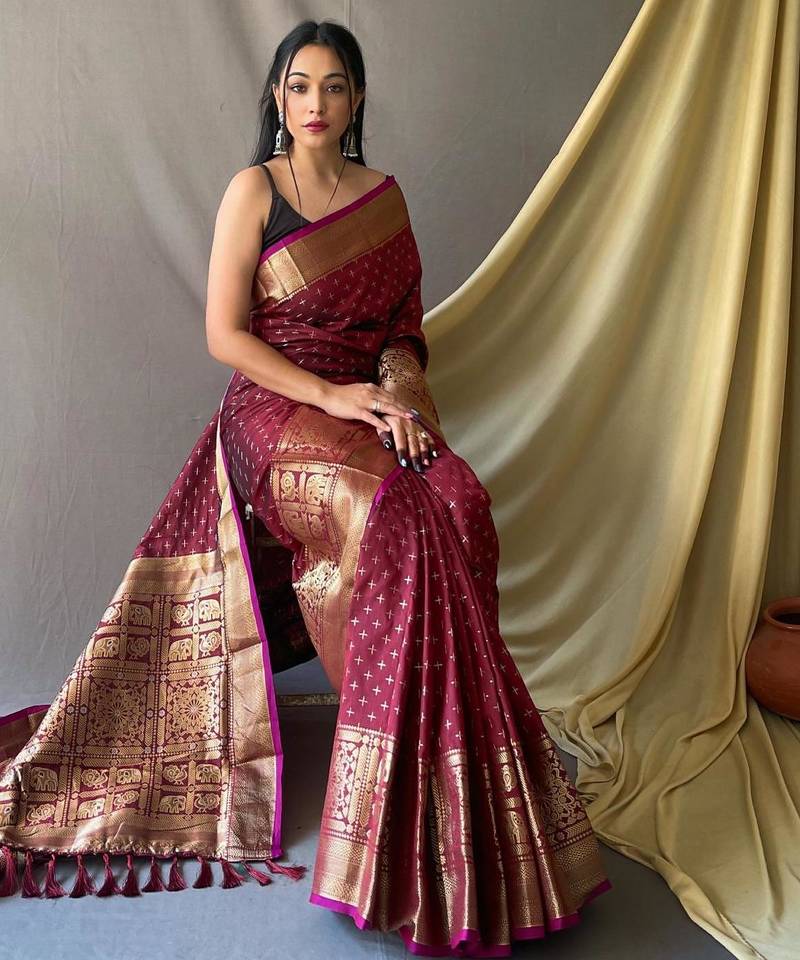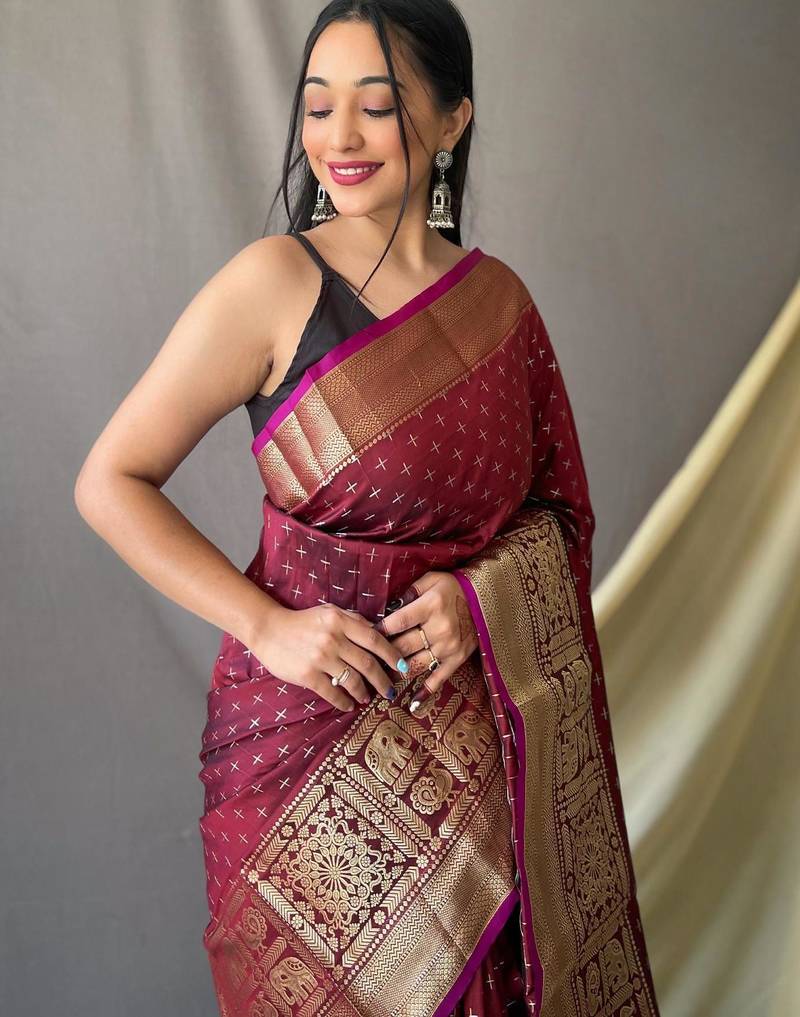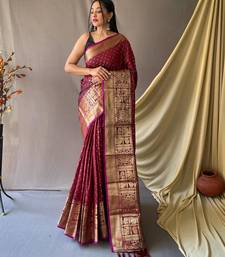 Maroon art silk woven saree