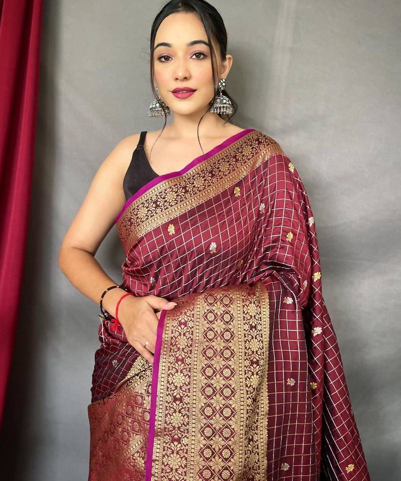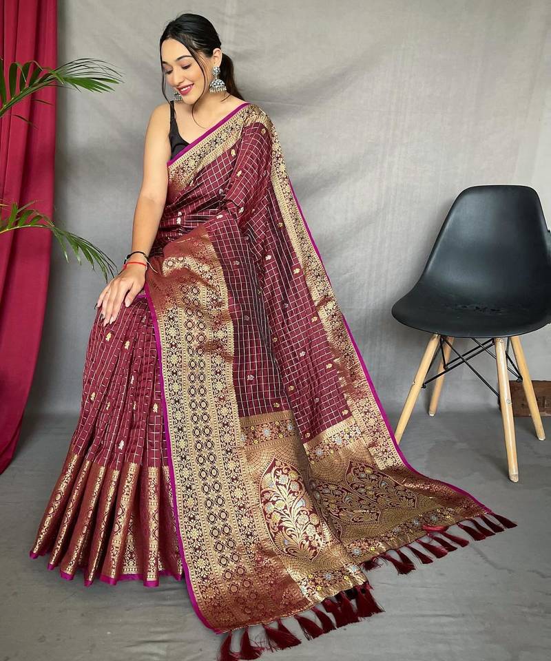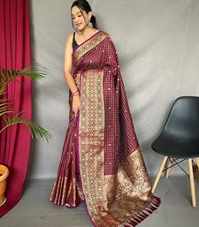 Maroon art silk woven saree