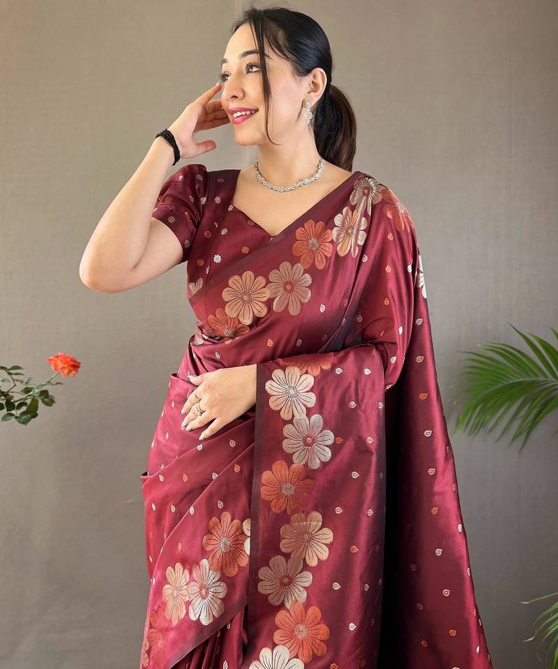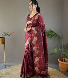 Maroon art silk woven saree