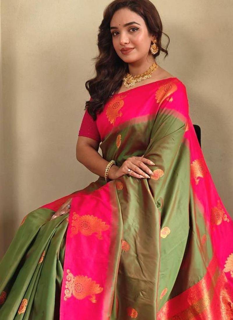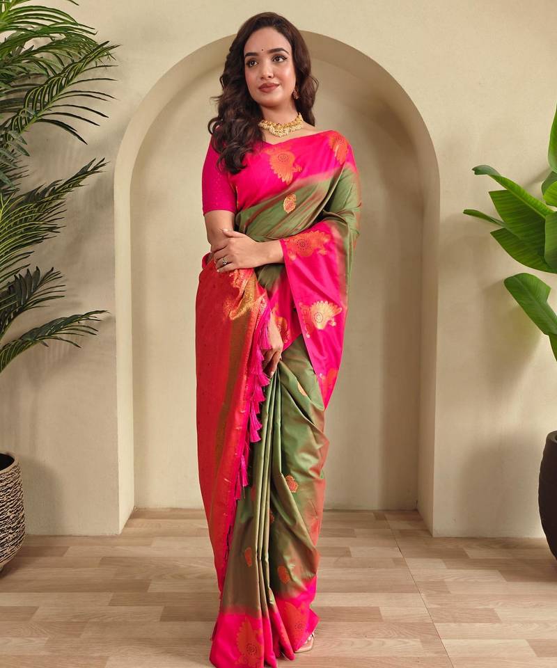 Mehendi art silk woven saree