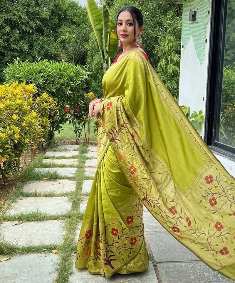 | • | Saree | : | Color- Mehendi / Fabric- Art Silk |