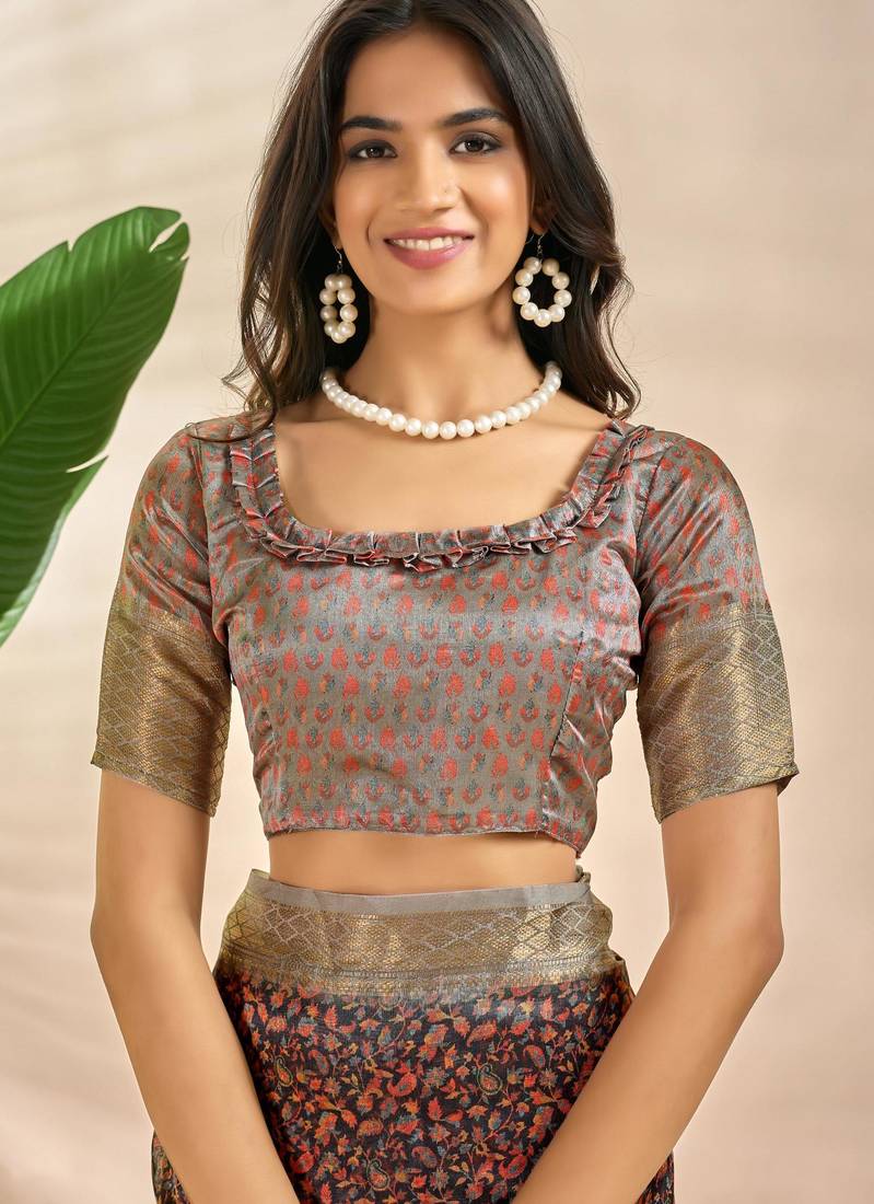 | • | Blouse | : | Color- Grey / Fabric- Art Silk |