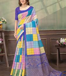 Multicolor printed art silk designer pallu saree