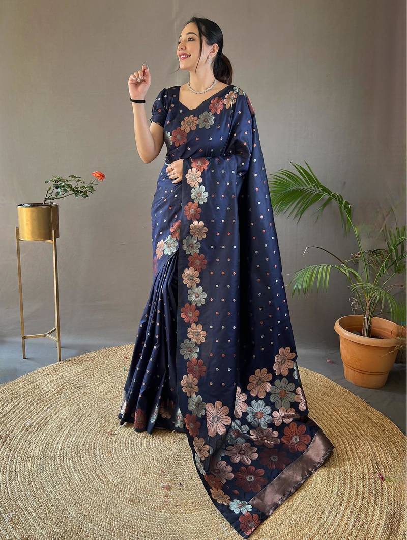 Saree : Color- Navy Blue / Fabric- Art Silk