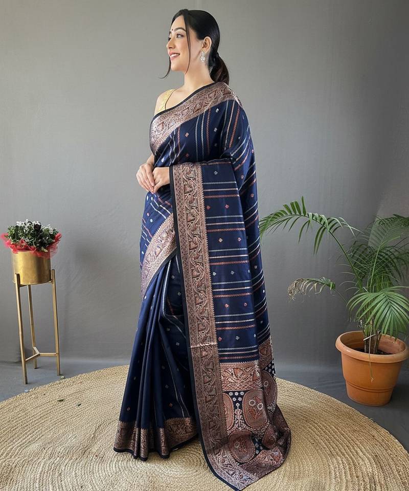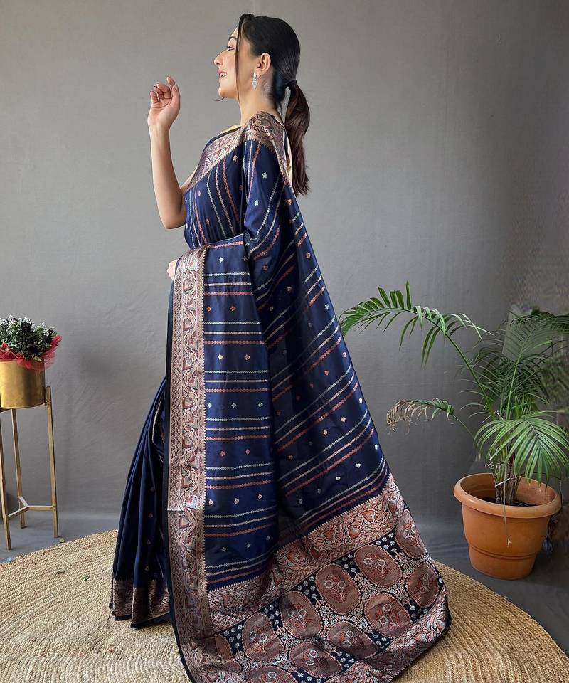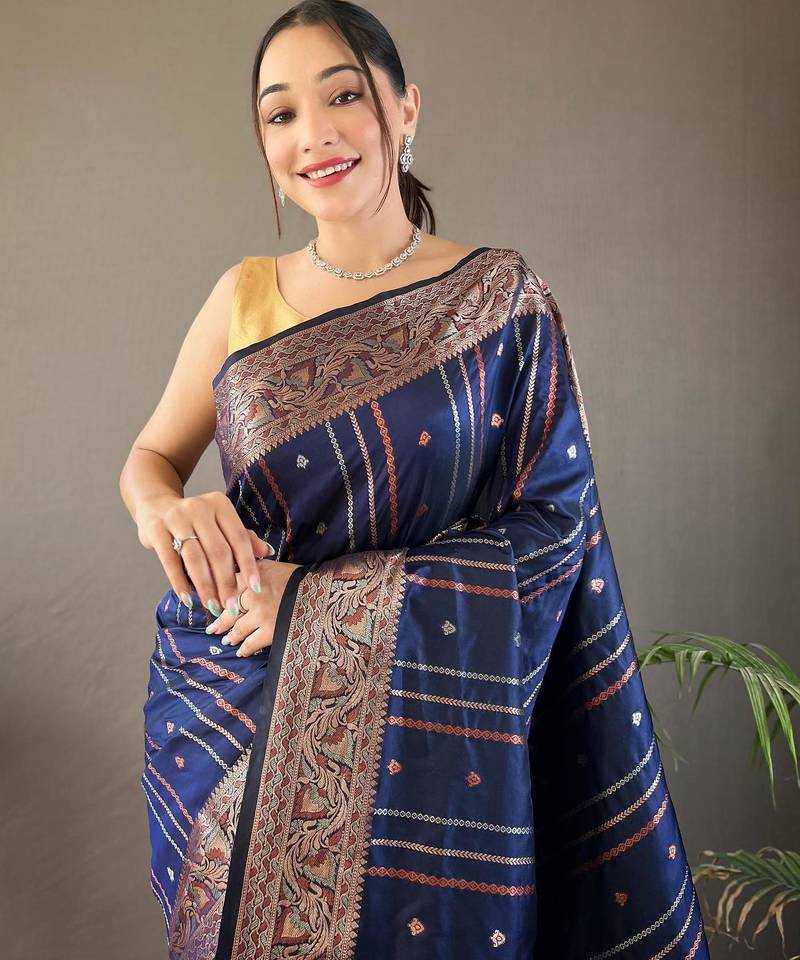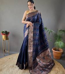 Navy blue art silk woven saree
