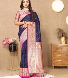 Navy blue elegant art silk woven saree with rich zari border