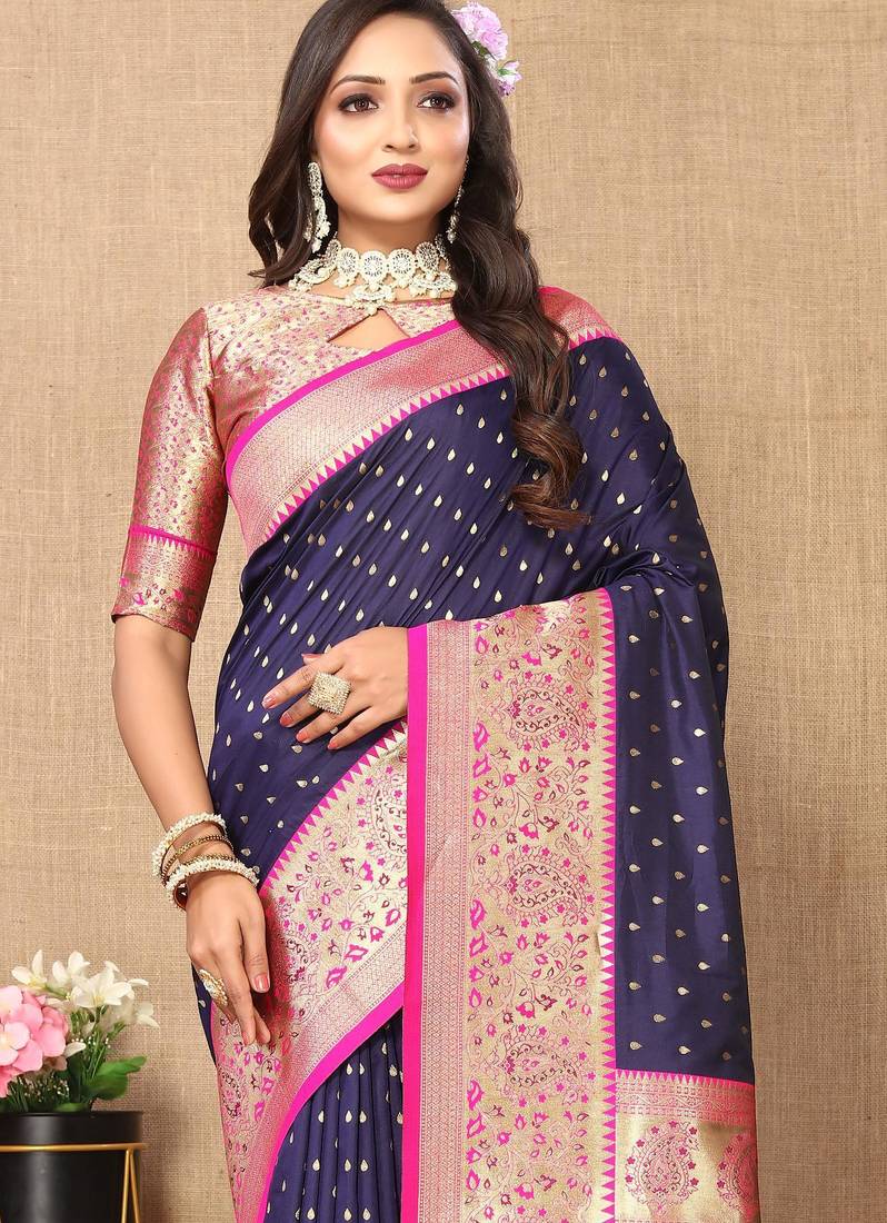 | • | Saree | : | Color- Navy Blue / Fabric- Art Silk |