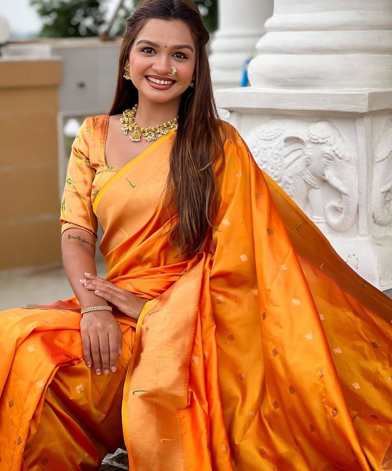 | Product Name | Orange Elegant Art Silk Woven Saree With Rich Zari Border | |
