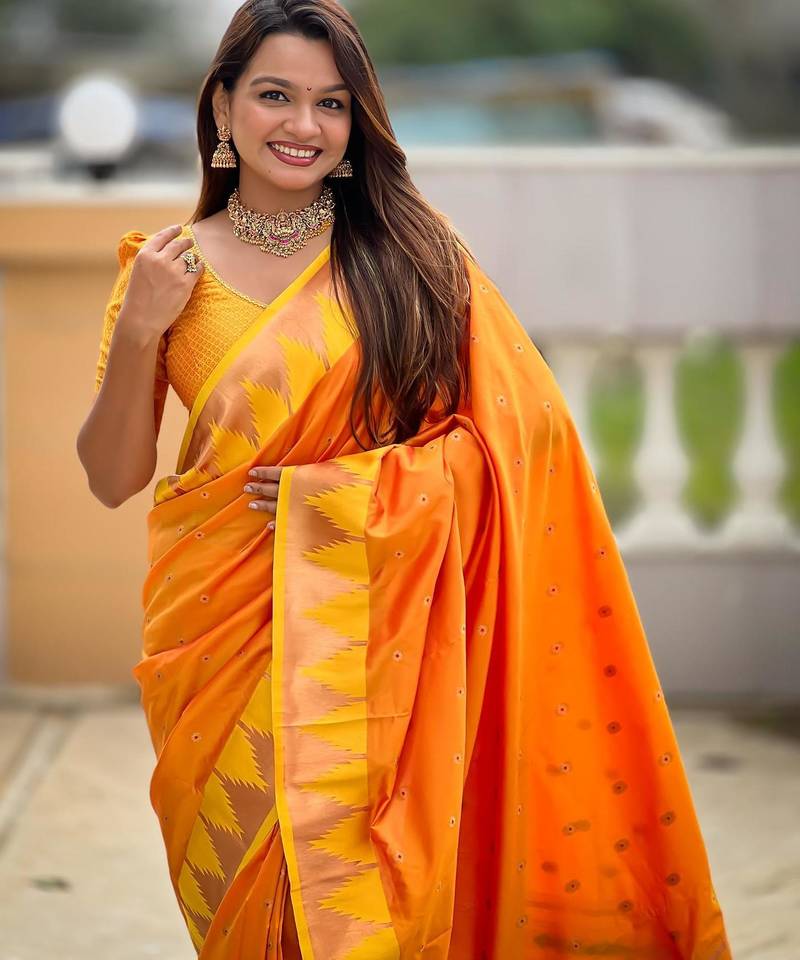 | Product Name | Orange Elegant Art Silk Woven Saree With Rich Zari Border | |