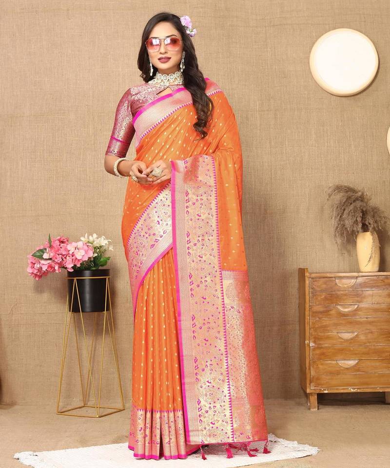 | Product Name | Orange Elegant Art Silk Woven Saree With Rich Zari Border | |