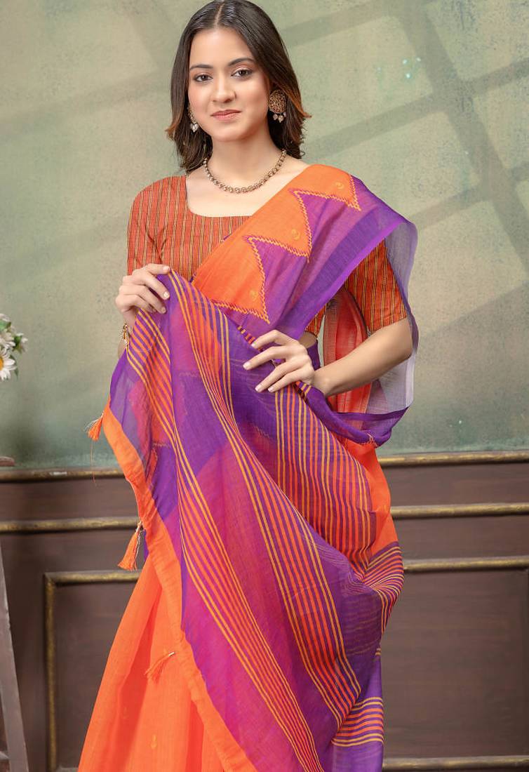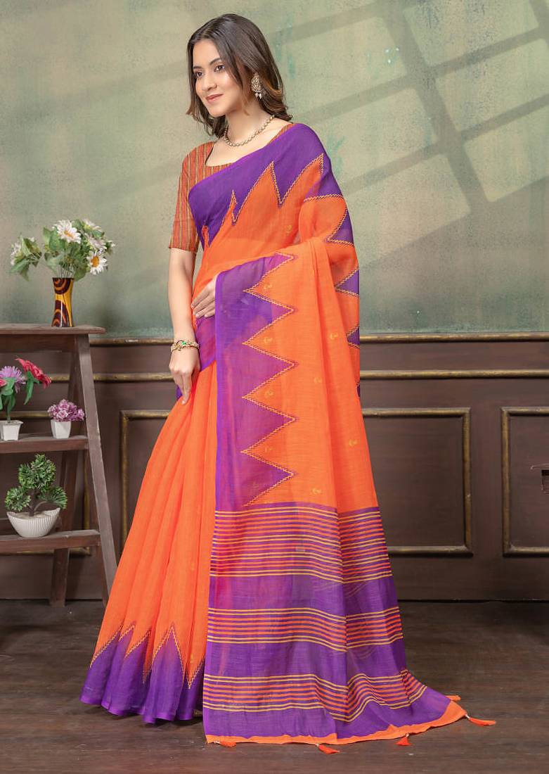 | • | Saree | : | Color- Orange / Fabric- Art Silk |