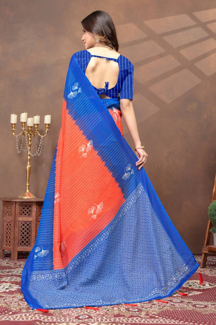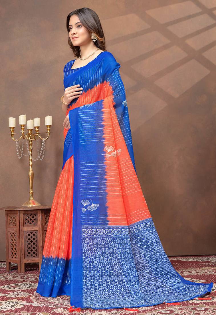 | Product Name | Orange Printed Art Silk Designer Pallu Saree | |