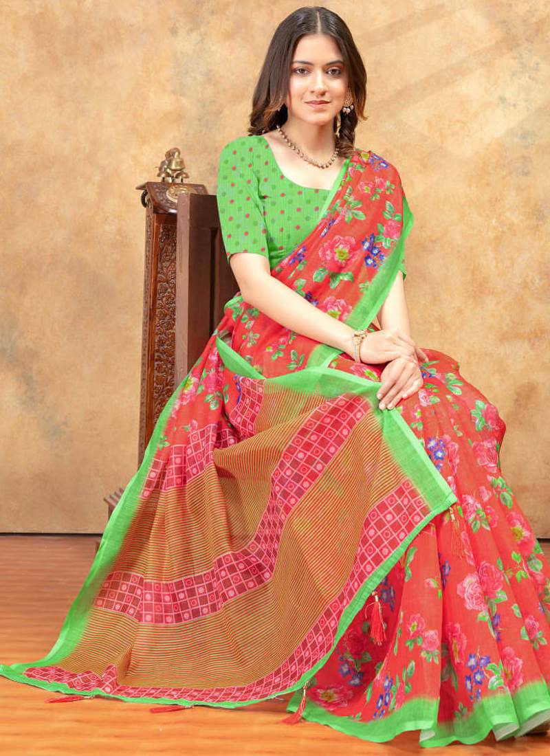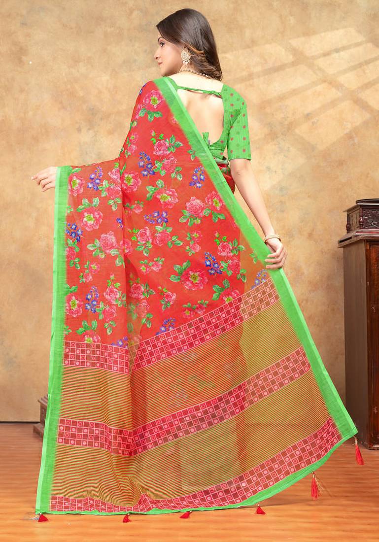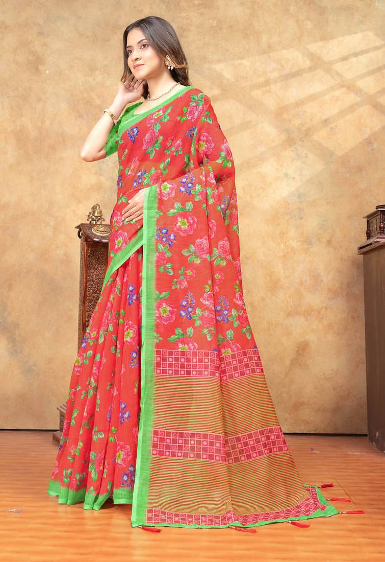 | Product Name | Orange Printed Art Silk Designer Pallu Saree | |