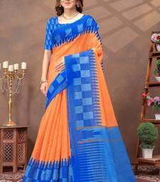 Orange printed art silk designer pallu saree