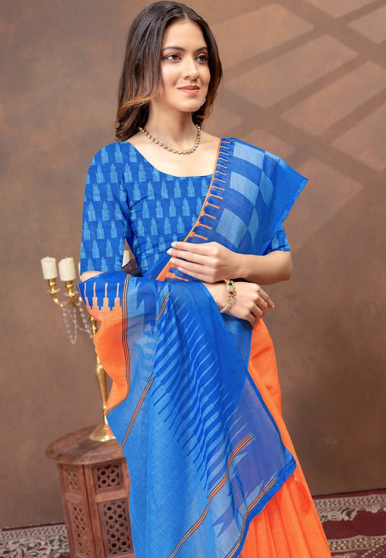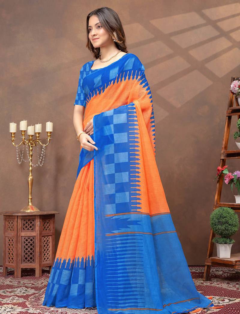| • | Saree | : | Color- Orange / Fabric- Art Silk |
