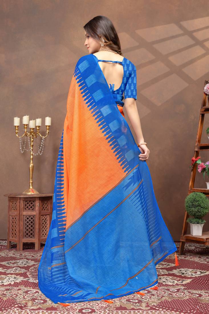 | Product Name | Orange Printed Art Silk Designer Pallu Saree | |