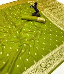 Parrot green banarasi silk saree with self weaving design & rich zari pallu