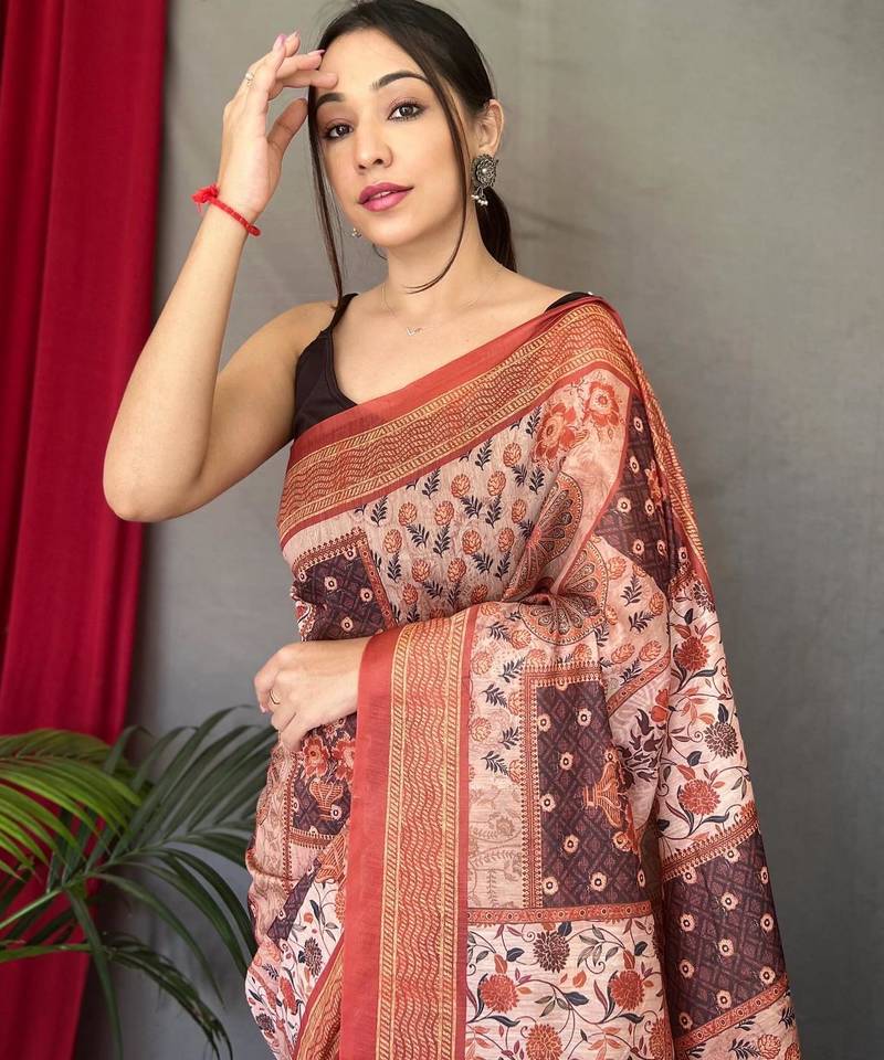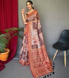 Peach art silk woven saree