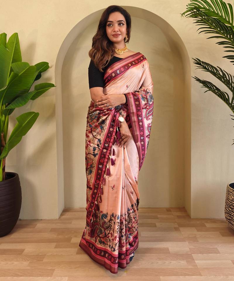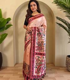 | • | Saree | : | Color- Peach / Fabric- Art Silk |