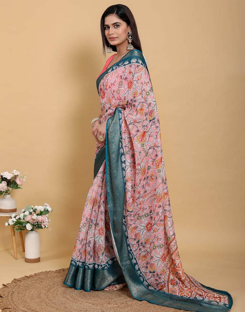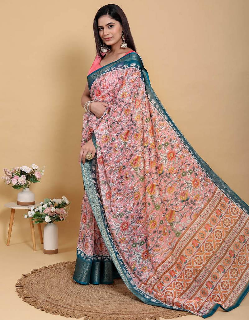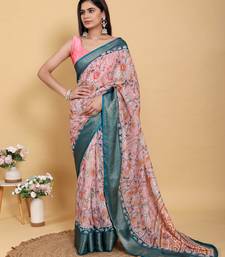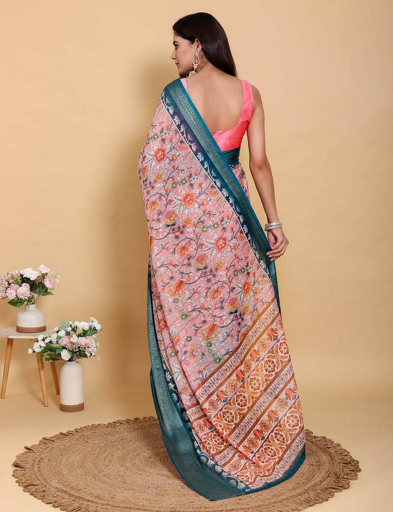 Peach printed art silk designer pallu saree