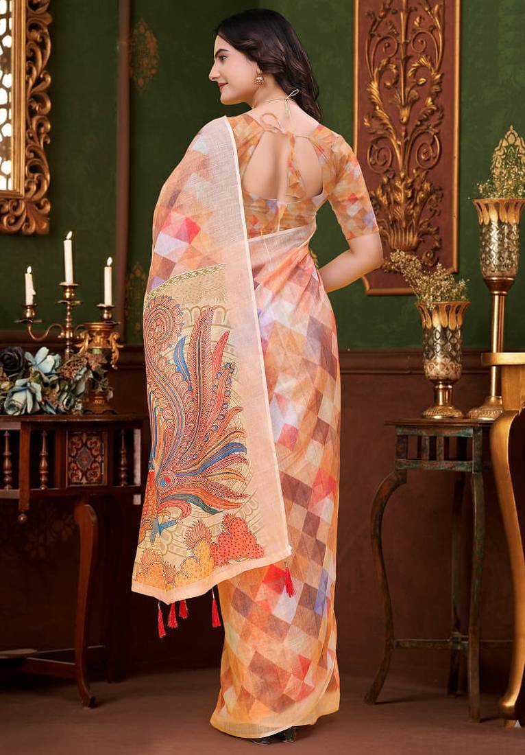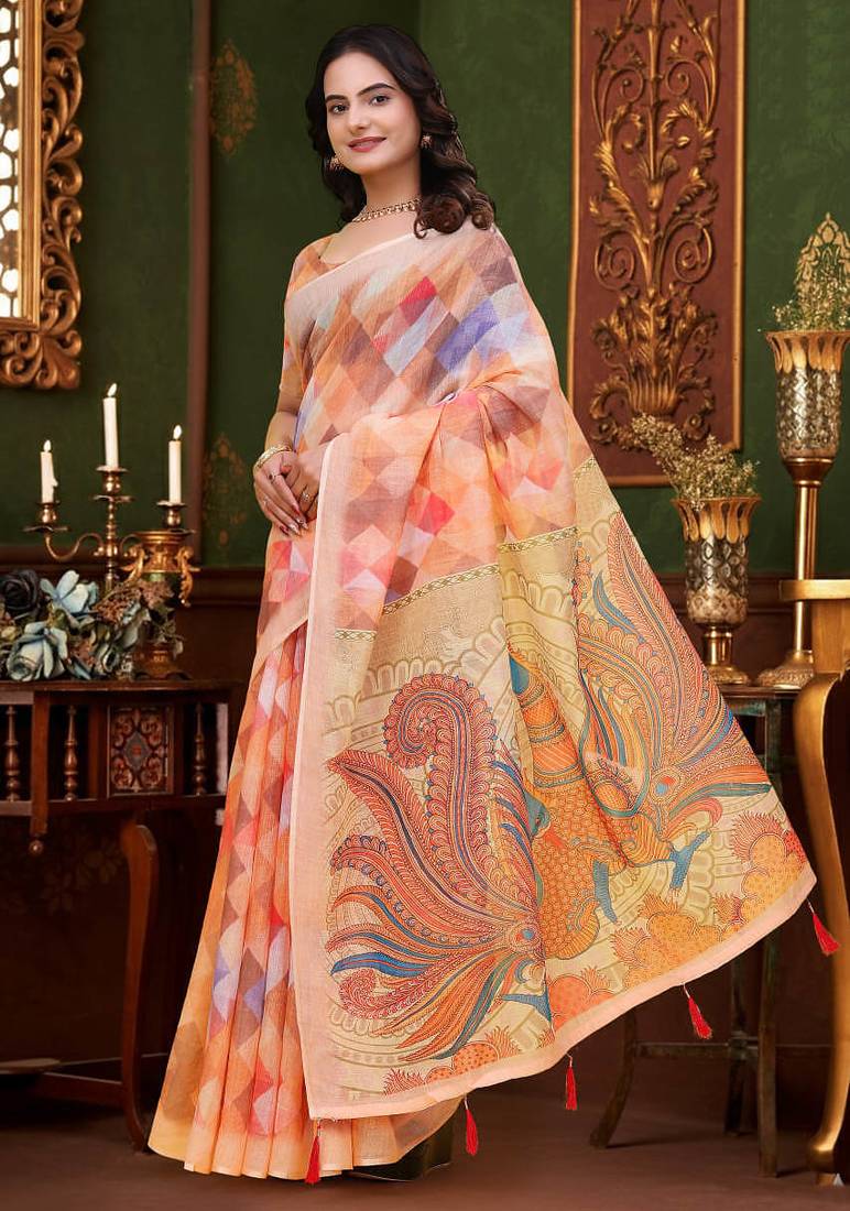 | Product Name | Peach Printed Art Silk Designer Pallu Saree | |